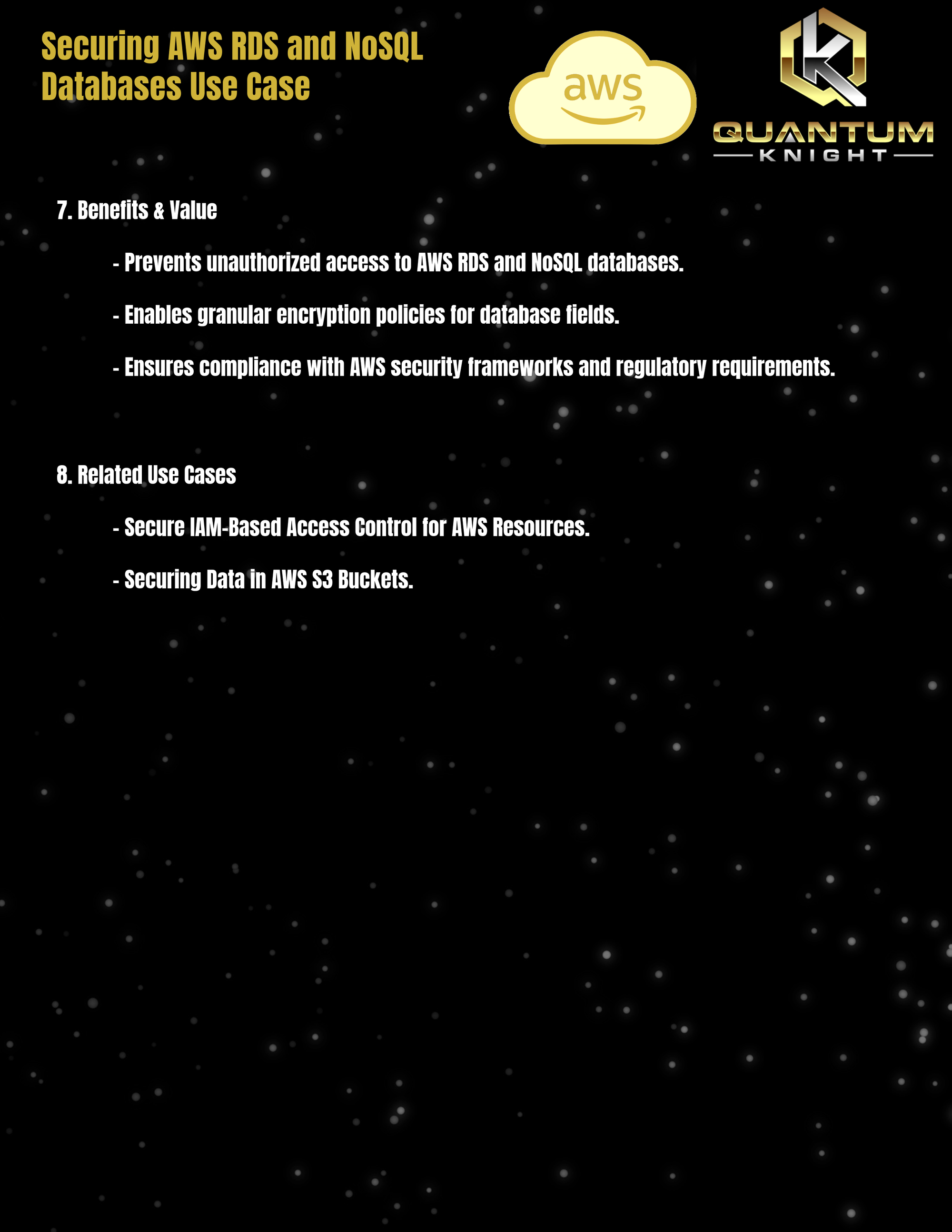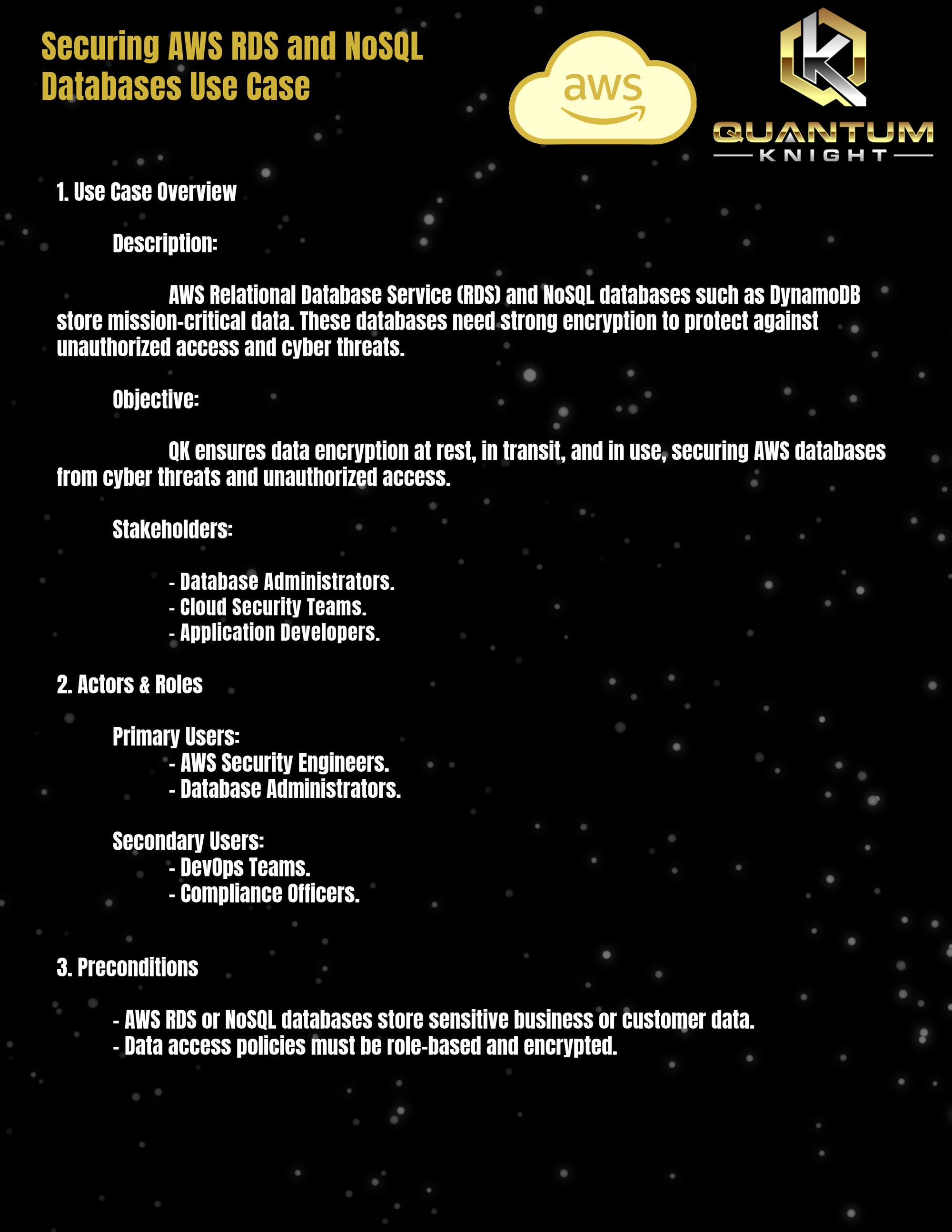 Secure AWS RDS & NoSQL databases with Quantum Knight’s encryption. Protect critical data, enforce role-based access, and prevent breaches. #CloudSecurity #DataEncryption #AWS
